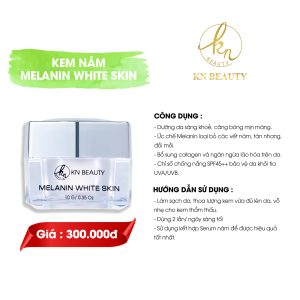 Bộ trị nám Kn Beauty gồm 1 kem face và 1 serum chuyên về trị nám, tàn nhang, da không điều màu, da sạm màu, dưỡng trắng rất hiệu quả và không gây dị ứng vì sử dụng hoàn toàn bằng nguyên liệu từ nhiên nhiên. Kn Beauty được biết đến là thương hiệu mỹ phẩm thiên nhiên cao cấp với chất lượng sản phẩm được nhiều nghệ sĩ tin dùng như Thúy Nga, Kiều Oanh, Thúy Vy, Lan Hương,…